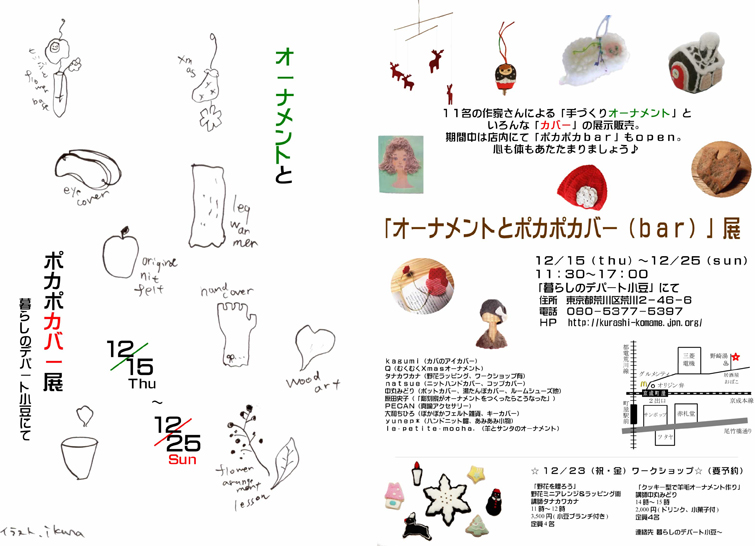 11名の作家さんによる「手づくりオーナメント」と、いろんな「カバー」の展示販売。